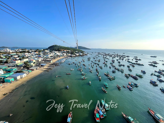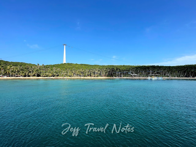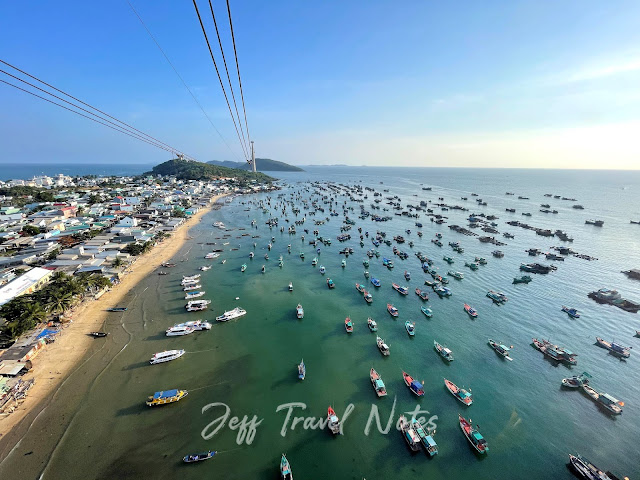 來到富國島就算沒有玩跳島行程,也必搭跨海纜車,纜車全長為7899.9公尺,落日時段,夕陽照射在海面上,與海上的船隻形成的畫面,美極了!