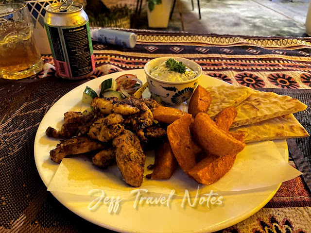早上衝浪完回到飯店後,耍廢放空一整個下午,查一下附近有什麼好吃,發現到這間希臘餐廳,就決定晚上來嚐鮮了。Chicken Gyros 希臘旋轉烤肉(上圖)