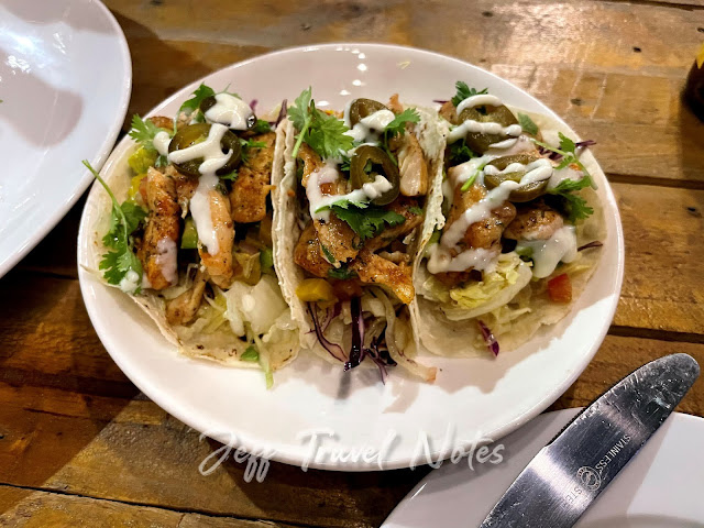 Grilled chicken Tacos 墨西哥烤餅的料很足且餅皮不乾好吃,整體搭配起來很棒。