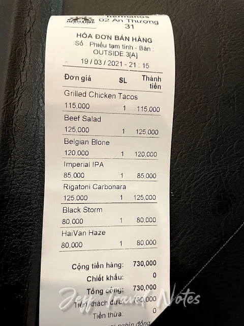 這一餐共花VND 730,000(以匯率820,約台幣 NT$ 890)。